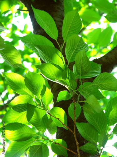 © smtd3, Fototapeta premium 朝日に映える公園の桜の若葉
