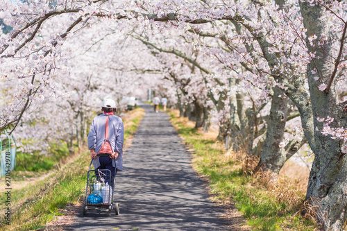 Obraz premium 京都府和束町の桜のある風景 祝橋