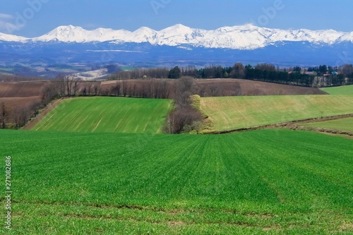Obraz premium 青空と草原 背景イメージ 北海道美瑛
