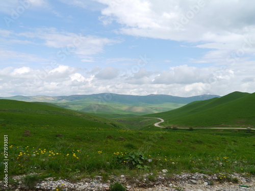 Naklejka premium Предгорья кавказских гор дорога к Эльбрусу альпийский луг