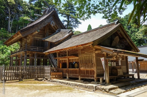 Fototapeta premium 島根県松江市にある神魂神社の拝殿と国宝本殿を斜め前から