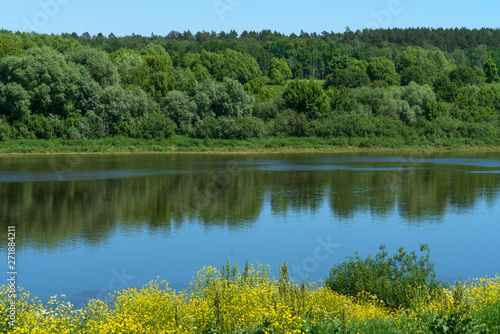 © kedrova, Fototapeta premium Цветение сурепки на берегу реки Оки. Таруса.
