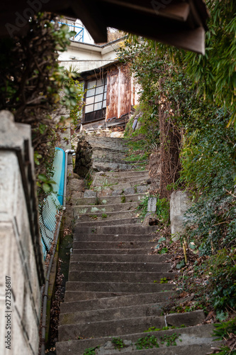 Obraz premium 坂のある町の長く続く石段