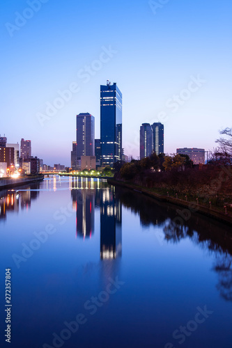© sigmaphoto, Naklejka premium 綺麗な朝焼けの大阪城の堀