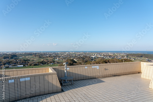 Naklejka premium 地球の丸く見える丘展望台から見る銚子の風景