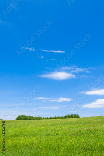 Obraz premium 草原と大地と青空 シンプル背景 日本の北海道