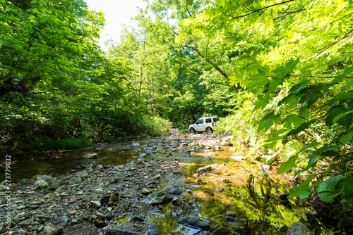 © masahiro, Obraz premium RV車で渓流沢を渡る