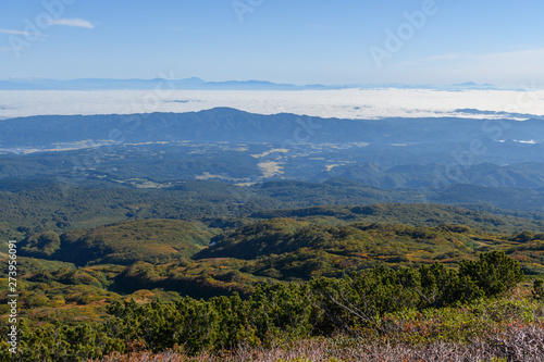 Obraz premium 祓川から鳥海山に向かう登山道から見た朝の展望