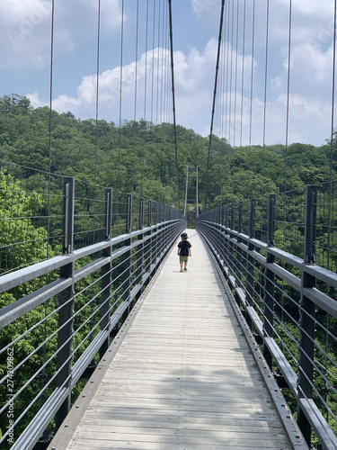 Obraz premium 吊り橋を渡る子ども