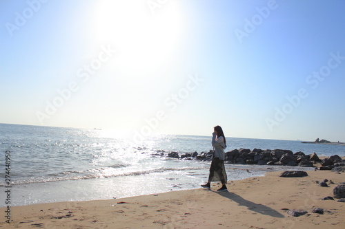© Sammy, Naklejka premium 海辺で波を避ける女性