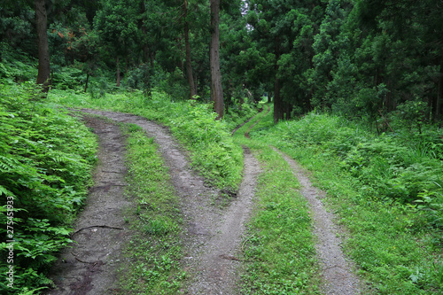 © kelly marken, Obraz premium 森の中の分かれ道 上りと下り