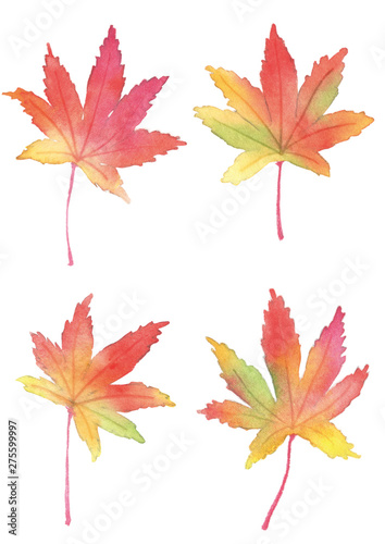 © perori, Fototapeta premium 紅葉 水彩イラスト セット