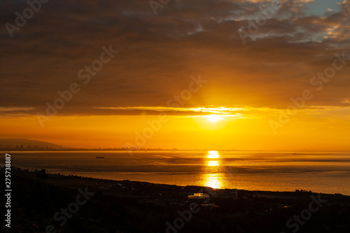 Fototapeta premium 美しいオレンジの朝焼けの大阪湾