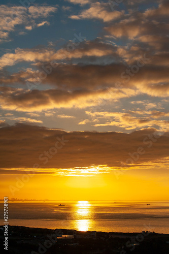 © sigmaphoto, Naklejka premium オレンジの朝日と美しい雲模様