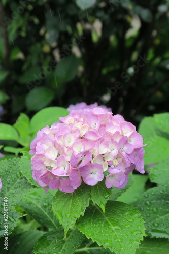 Fototapeta premium 雨に濡れるピンクの紫陽花
