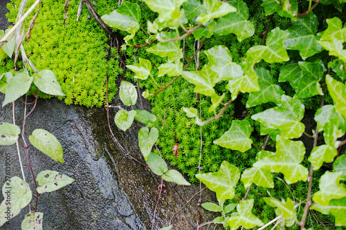 Fototapeta premium 雨後の瑞々しい緑色のマンネングサ