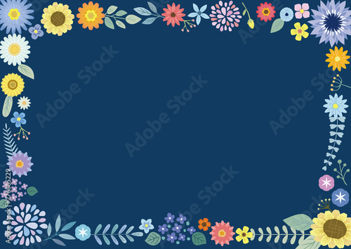 Fototapeta premium フラワーフレーム 紺色(横)
