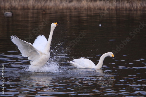 © wassei, Naklejka premium 羽ばたく白鳥