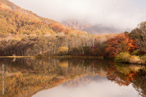 Fototapeta premium 長野県 戸隠高原 鏡池 紅葉