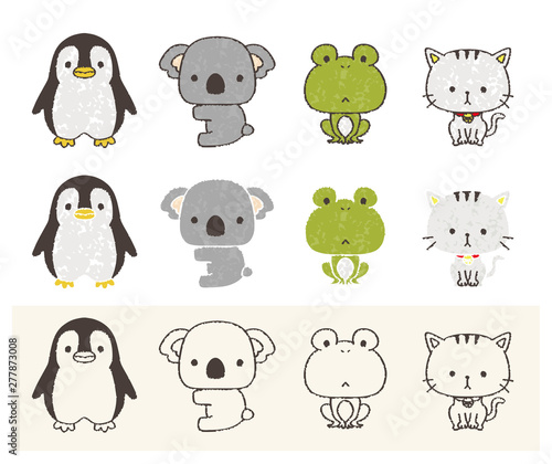Obraz premium ペンギン コアラ カエル ネコ