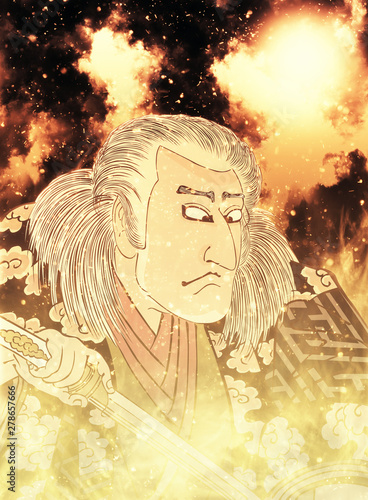 © KIMASA, Fototapeta premium 浮世絵 歌舞伎役者 その14 炎バージョン