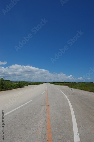 Fototapeta premium 晴天の空と奥に続く直線道路