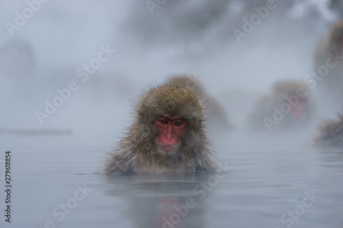 Obraz premium スノーモンキー 温泉に入るニホンザル 長野県 日本