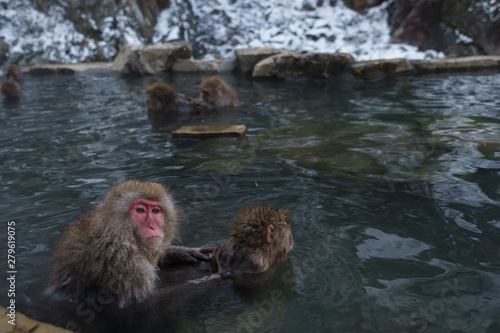 Naklejka premium スノーモンキー 温泉に入るニホンザル 長野県 日本