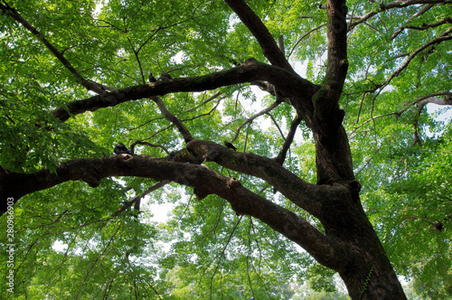 © Honki_Kumanyan, Naklejka premium 生い茂った樹木と鳩