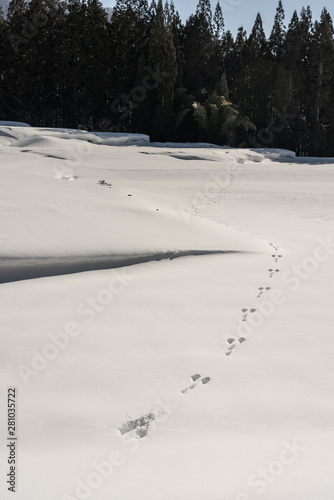 Obraz premium 棚田についたうさぎの足跡