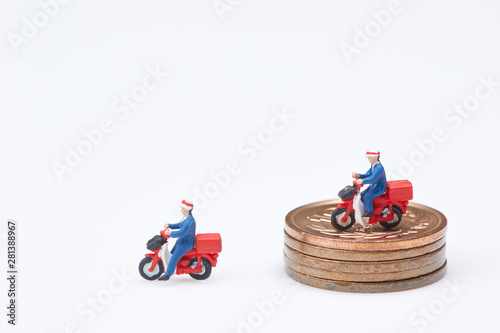 Fototapeta premium ミニチュア人形を使った郵便配達と料金のイメージ
