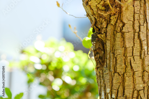 © Rummy & Rummy, Obraz premium 庭の木に止まっている蝉