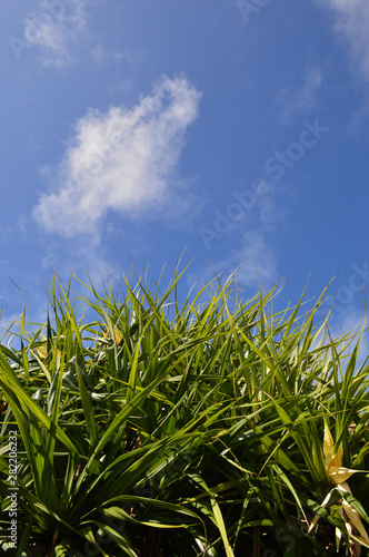 © Ta-c, Obraz premium 青空に伸びる南国植物アダンの葉