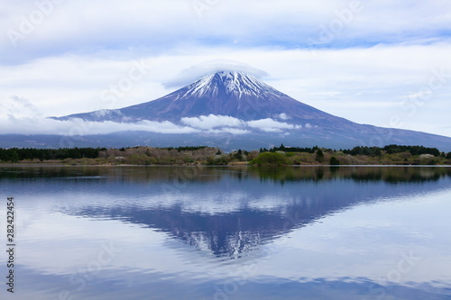Fototapeta premium 逆さ富士と笠雲、静岡県富士宮市田貫湖にて
