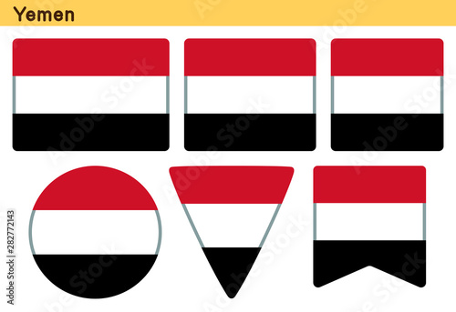 Obraz premium 「イエメンの国旗」6個の形のアイコンデザイン