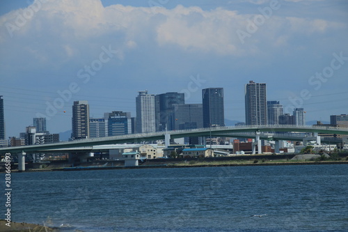 Fototapeta premium 淀川河口付近から梅田方面の風景