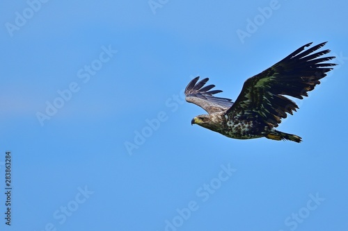 © Scott Mirror, Fototapeta premium 青空バックに元気に飛び回るオジロワシの幼鳥