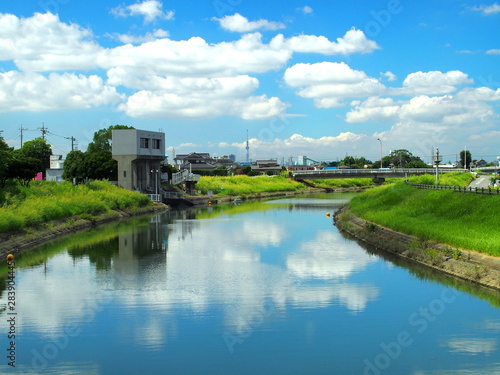 © smtd3, Fototapeta premium 夏の朝の水門のある放水路風景