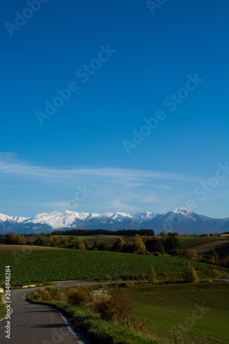 © kinpouge, Naklejka premium 秋の畑作地帯と冠雪の山並み
