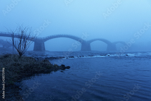 © 磯谷 直, Obraz premium 霧の錦帯橋 #青き水面 / 山口県岩国市