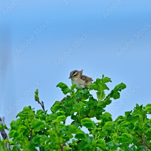 Obraz premium 新緑の若葉とムシクイのコラボ@北海道