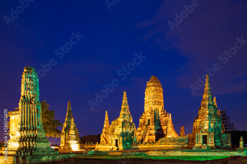 Fototapeta premium アユタヤ遺跡の夜景ワット・チャイワッタナーラーム