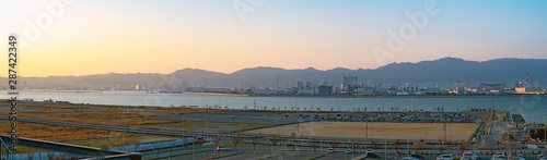 Obraz premium 神戸空港から眺む神戸市の都市風景