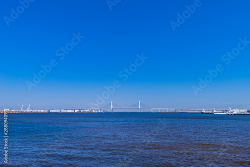 Naklejka premium 横浜 臨港パークと横浜港の風景