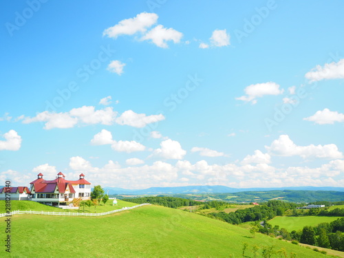 Obraz premium 北海道の絶景 羊と雲の丘