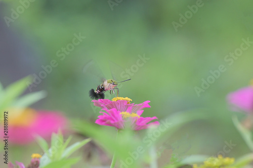 Fototapeta premium オオスカシバとジニアの花