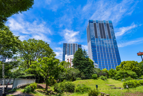 Obraz premium 戸山公園の緑とオフィスビルディングの風景