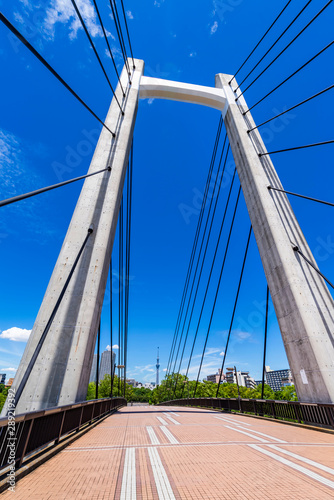 Obraz premium 青空と木場公園大橋の風景