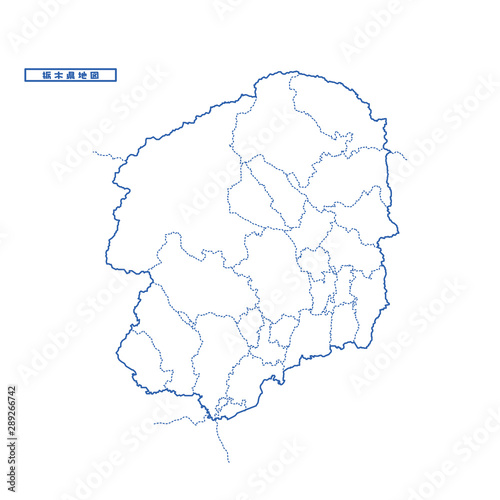Obraz premium トチギ県地図 シンプル白地図 市区町村