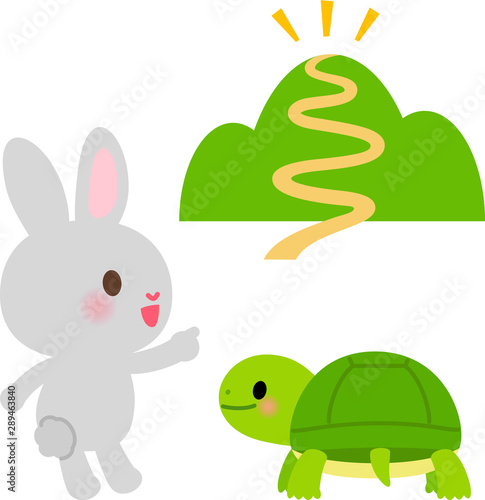 © logistock, Naklejka premium 山を指さすウサギとカメ